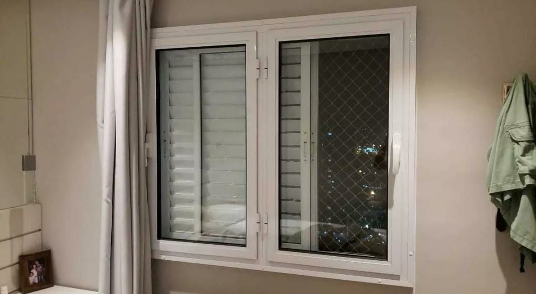 Uma segunda janela sobreposta, pelo lado interno do ambiente, fixada com buchas e parafusos em INOX 304.